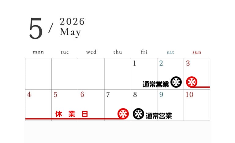 休業期間:2026年5月3日(日)〜2026年5月7日(木)